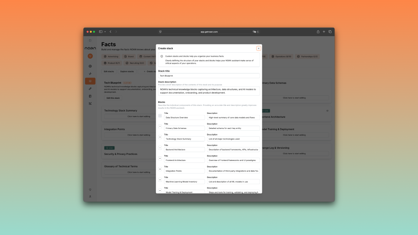 Build a knowledge stack so that NOAN always understand your business