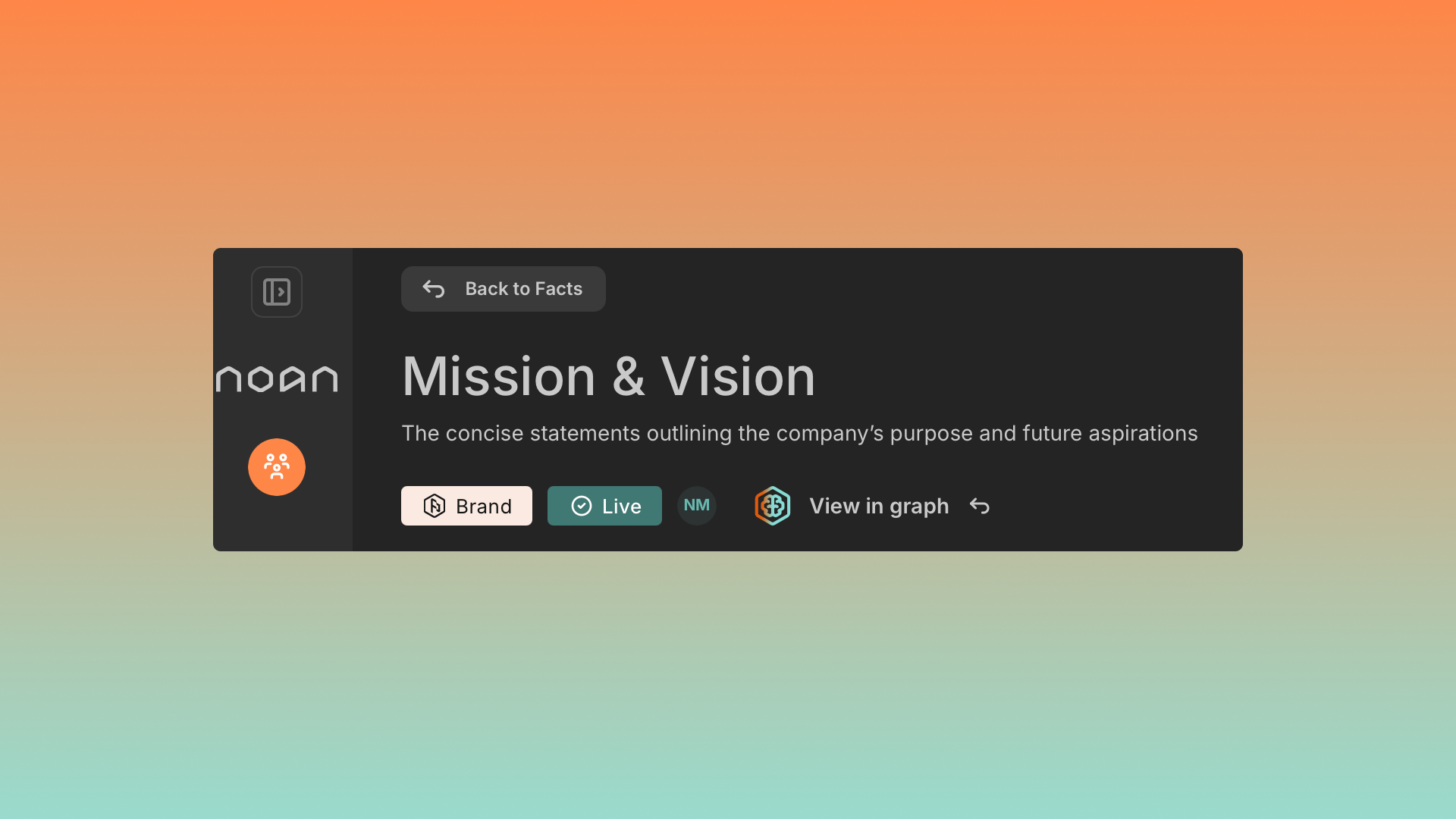 Even as you pivot strategies and evolve your business in NOAN, that structured knowledge is dynamically updated and always ready to be called upon. Structure, structure, structure. But purring quietly away, effortlessly. Knowledge management without the management.