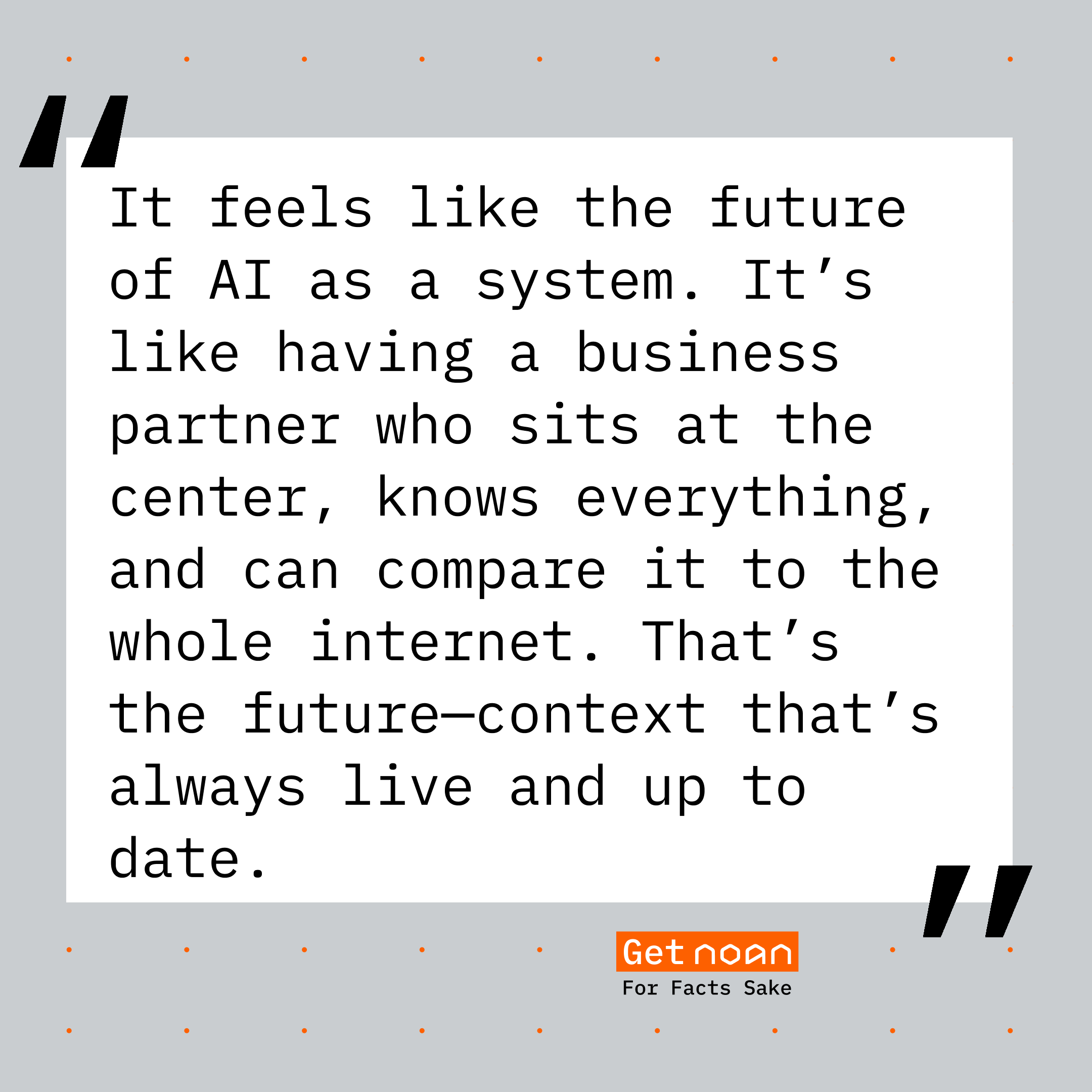 “I use NOAN like ChatGPT, but with live context. Instead of uploading every new document, I connect all my services—NOAN just knows what’s going on. It’s like having a business partner who sits at the center, knows everything, and can compare it to the whole internet. That’s the future—context that’s always live and up to date.”